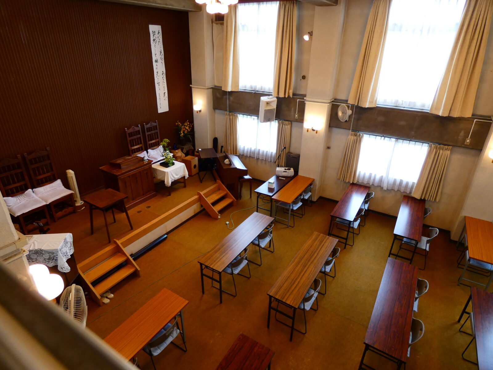 | 早朝礼拝 | 日曜 7:00~8:00 | 3階 礼拝堂 | 日曜日の早朝に約1時間行っています。 主に仕事の都合などで主日礼拝に出席できない方 が集っています。内容は主日礼拝と同じです。 |