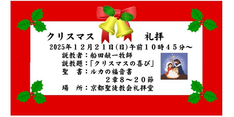 | 車の場合 | 京都南ICから約30分。北大路駅をめざしてお越しください。教会駐車場3台あり。 お近くのコインパーキングもご利用いただけます。 |